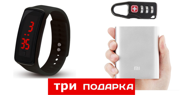 В подарок идут Power Bank 10400 mAh, LED часы и кодовый замок !